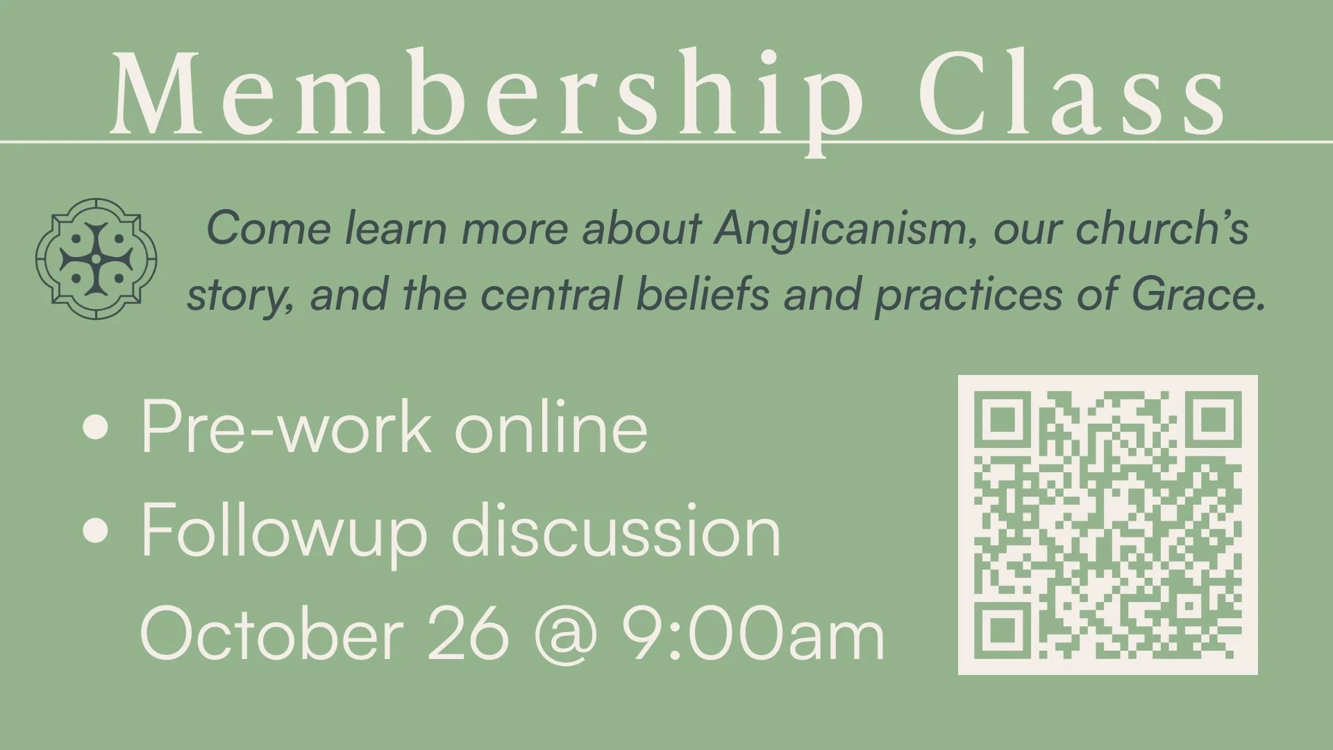 9:00amJoin us for a Membership Class on October 26. This class will explore what it looks like to become a Community Member at Grace Northridge Anglican Church, and it’s for anyone who wants to learn more about Grace's history and theology (not just those who plan to become members!)