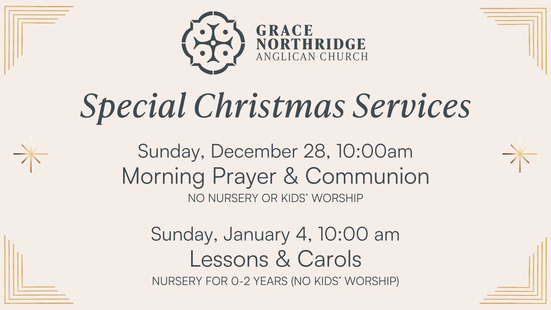 Grace Northridge Anglican Church is a community of faith on mission, rooted in scripture, Spirit, and sacrament.